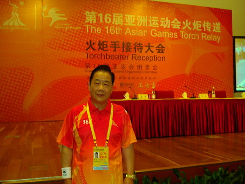 我司董事长何国才先生(新加坡广东会馆会长、广东省海外交流协会理事、广州市海外交流协会理事)荣为亚运会火炬手,于2010年11月9日上午9点在越秀公园参加了亚运会火炬传递。以下是何国才先生参加亚运会火炬传递的相关图片: