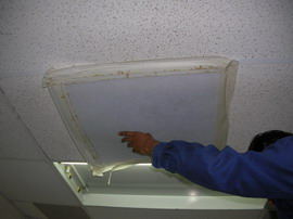 银康处理前供风口非常肮脏 在处理风管前先把供风口封住以防止灰尘进入室内