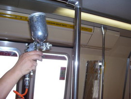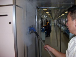 用蒸汽清洁车厢表面 喷涂银康纳米银和光触媒