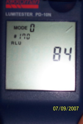 处理前表面细菌采样 处理前检测得表面细菌数为88264RLU