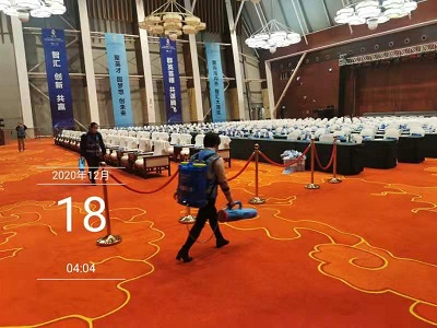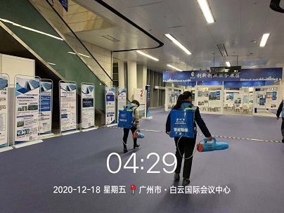 2020年12月18日,银康对广州白云国际会议中心-海交会活动现场进行:东方厅、花城厅、珠江厅及3号楼大堂进行防疫消毒服务。以下是进行消毒服务的相关图片: 东方厅消毒: 花城厅消毒: 珠江厅消毒: 3号楼大堂消毒: