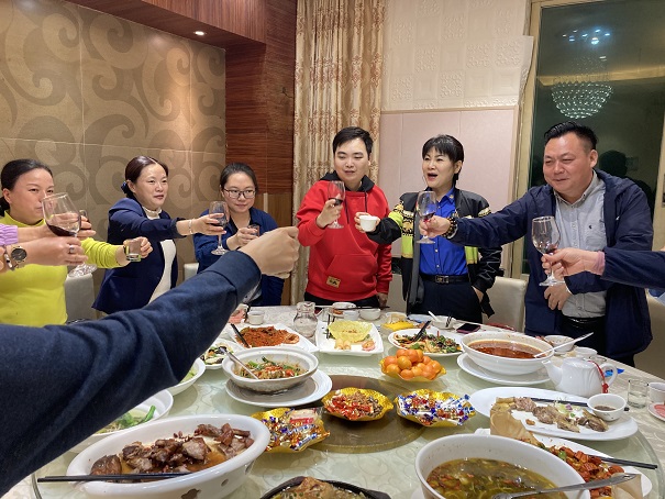 参加银康年夜晚宴的有总经理马鹏程、项目总监马捷、项目经理何丹凤、行政经理郭虹、行政文秘罗丽娴、行政助理黄裕、行政助理梁嘉谊以及各项目主管和领班。年夜饭现场气氛热闹又轻松,这次晚宴不仅仅是嗅觉和味觉的盛宴,更是精神和视觉的盛宴。在这里,大家完全没有了上级与下属之分,没有了长辈和晚辈之分,更没有了项目和项目之分,有的只是其乐融融合“家”欢!