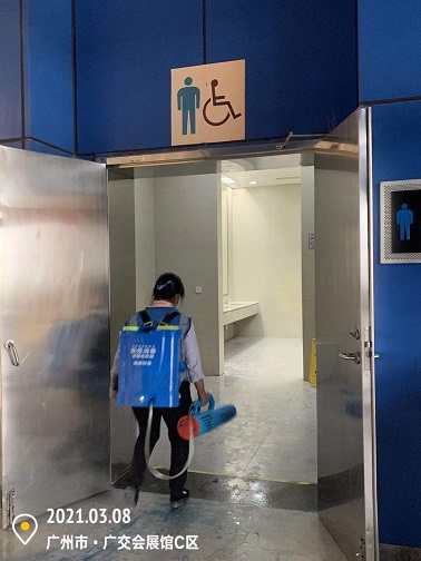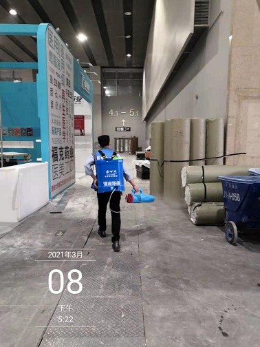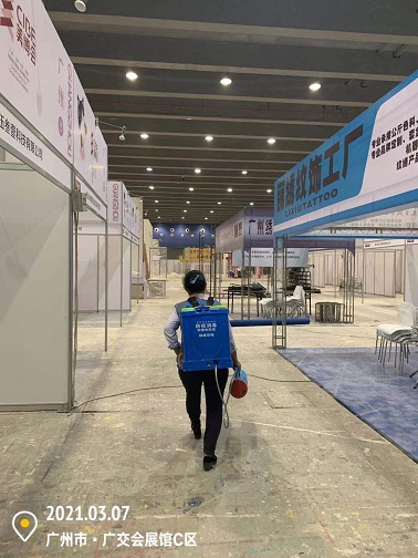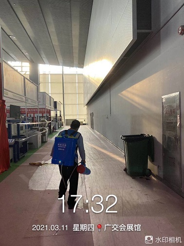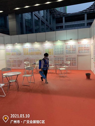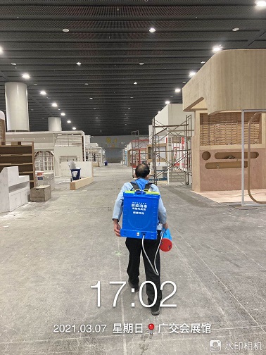 2021年3月7-12日,银康公司承包琶洲国际会展中心A、B、C区共28个馆-广州国际美博会防疫消毒服务。以下是进行防疫消毒服务的相关图片: