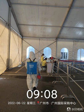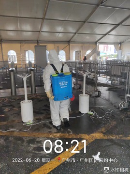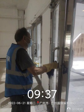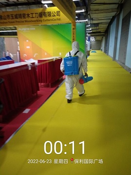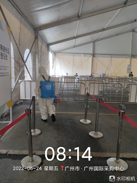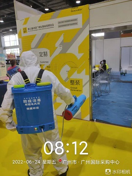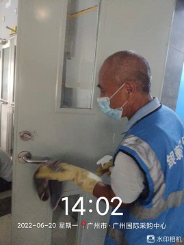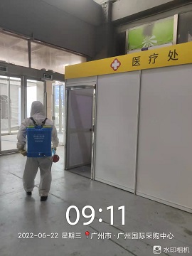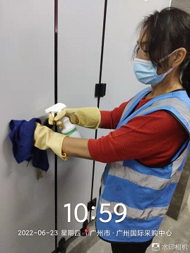 2022年6月19-26日,银康承包广州国际采购中心展馆-第十一届中国广州定制家居展览会保洁及防疫消毒服务。